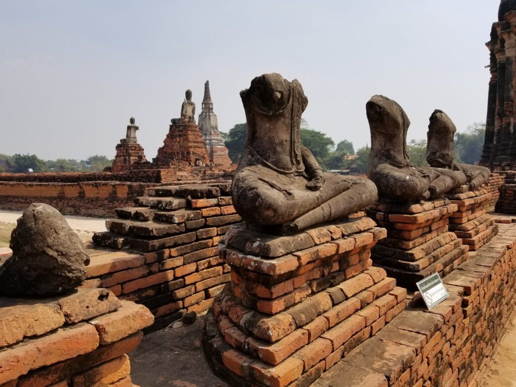 しかし1767年、ビルマ軍の侵攻により都市は破壊され、多くの寺院や仏像が損壊を受けました。その廃墟となった姿が、逆に独特の美しさと歴史の重みを感じさせる遺跡となって現在に残っています。